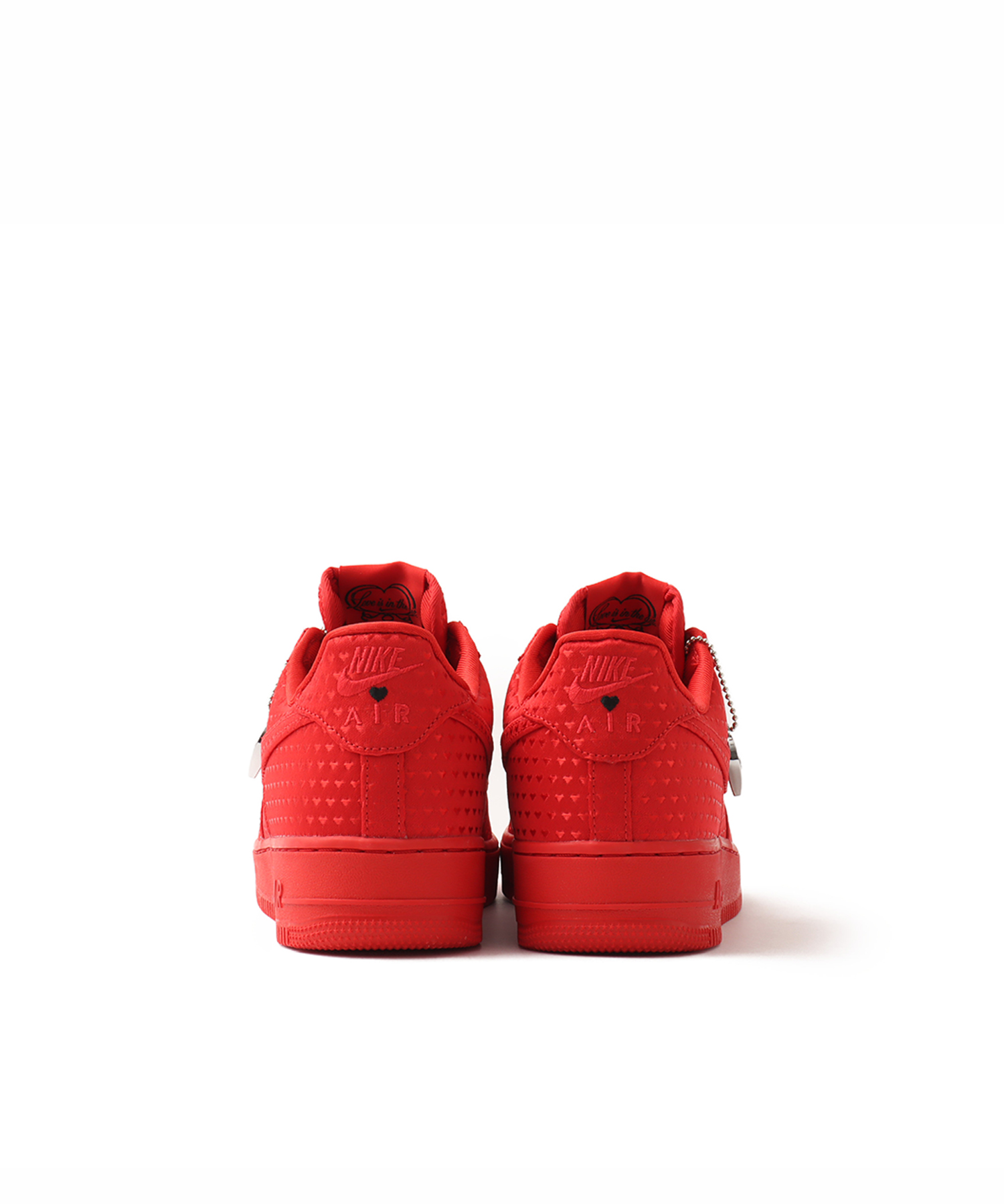 クラシックなAF1に魅力的なアレンジが加わりました。モノクロの素材にさりげないハート柄をあしらい、思わず心惹かれる一足です。