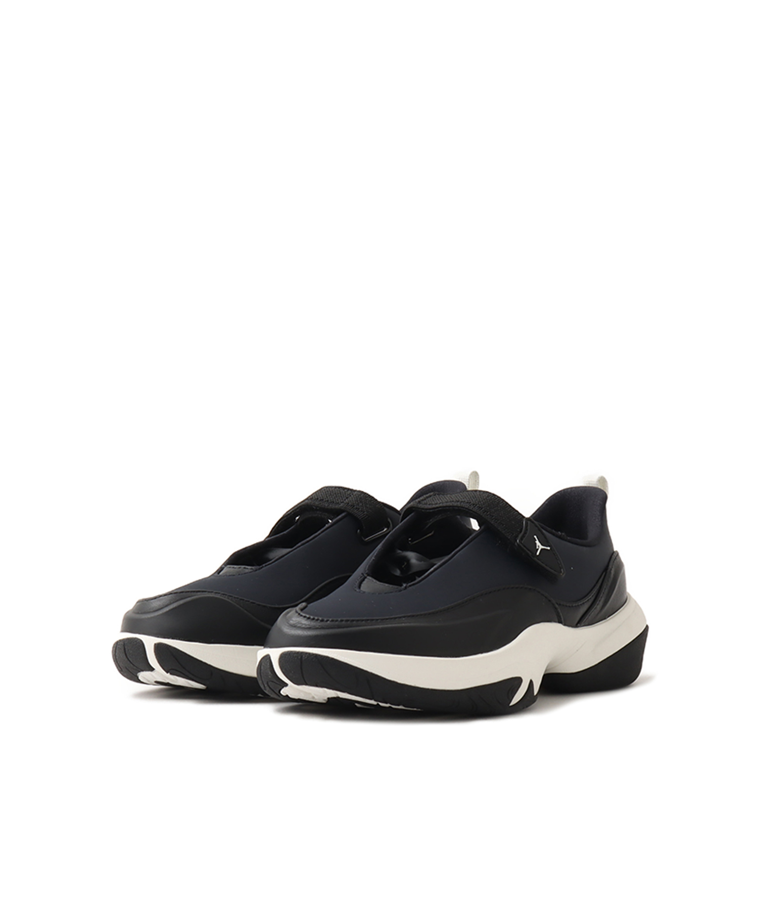 ジョーダン ポワントは、トレーニングとバレエの優れた点を融合させ、控えめな美しさを実現しています。ポワントシューズのリボンに着想を得た隠しシューレース構造で、さまざまなスタイルにアレンジできます。分厚いソールと洗練されたレザーがスポーティな雰囲気を演出します。 隠れたシューレース構造 ジョーダン ポワントは、(少なくとも)3通りのスタイリングができます。前部のレースループまたは後部のヒールのウェビングを通して脚をレースアップするか、前部のレースループを通して低い位置で結びます。