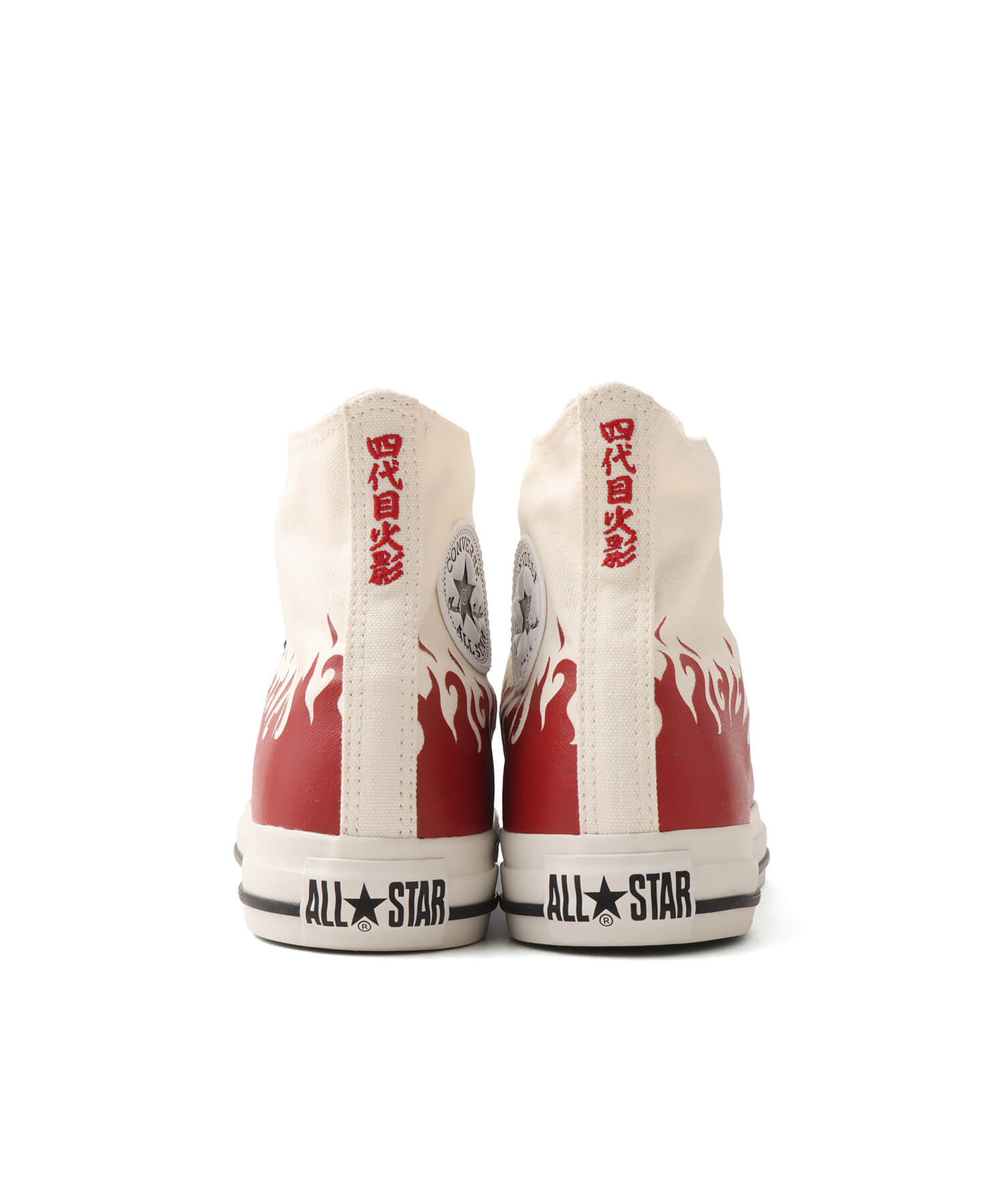 リニューアルスペックを採用したオールスターのコラボレーションモデル。 ・国内外で圧倒的な人気を誇るアニメ「NARUTO 疾風伝」とのコラボレーションモデル。 ・作中で人気の高い波風ミナトとうちはイタチをモチーフにしたデザイン。 ・ミナトは波風ミナトのマントをモチーフに、フレイムパターンをアッパー全体にプリントし「四代目火影」の文字を踵紐に刺繍。 ・アンクルパッチの星の中にそれぞれのキャラクターに関連するマークをプリント
