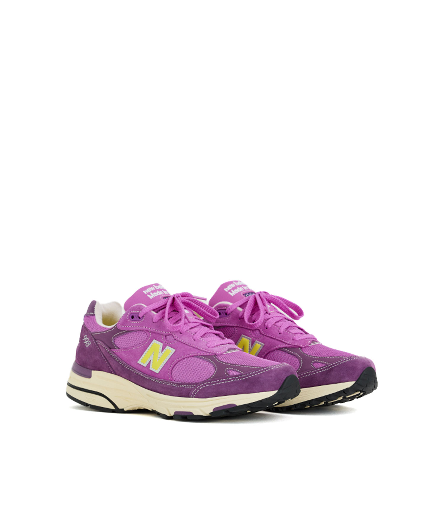2008年に初めて登場した993は、99Xシリーズの前モデルである991と992の要素を融合し、ひとつの流線型デザインへと昇華させたモデル。さらに、ミッドソールにはABZORBクッションの性能を向上させた設計が採用されている。 その高度なテクニカルデザインを備えた993が、2026年春夏シーズンのMade in USAコレクションとして再登場。クラシックなメッシュ、スエード、シンセティック素材のコンビネーションに、鮮やかなパッションフルーツトーンと深みのあるダステッドグレープのオーバーレイを重ねた、印象的なカラーパレットで展開される。