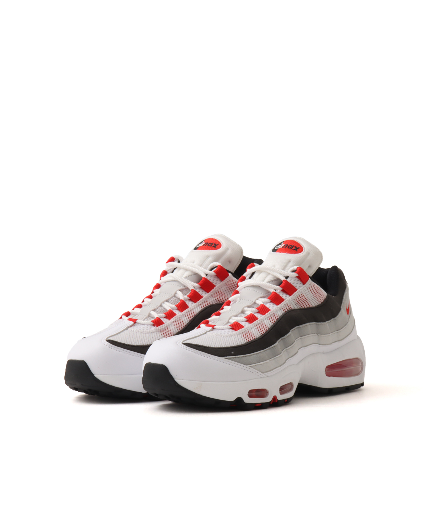 国内atmos/NIKE直営店限定モデル。エア マックス 95は、人間の体と90年代の美しいトラックスタイルから着想を得たデザイン。抜群に快適さとスピード感あふれるルックを兼ね備えています。波状のサイドパネルで、あらゆるコーディネートに自然な流れをプラス。ヒールと前足部に外から見えるクッショニングを配し、機能性が高く快適な履き心地を実現しています。